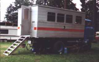 10.2001 Der Arbeitsfortgang: Innenausbau 05.2002 Elektrik und Bremse überholen 06.2002 Innenausbau: fertigstellung der Gasanlage, Dieselheizung, Wasserversorgung (150 Liter Trinkwasser) 07.2002 Vollgutachten (DEKRA), Umtragungen im KFZ-Brief, von Manschaftswagen zu Sonder KFZ Tüv auf die Gasanlage Auf Grund von Gesetzesvorschriften Vergrößerung des Durchstiegs ins Fahrerhaus (90x60cm ist nicht ausreichend!) 07.2002 Anfertigen einer Alu-Leiter im Metallbaubetrieb, anschliesend Bau der Befestigung und Transportsicherung 3 Tage vor Abfahrt: Bremsleitung zur Hinterachse durchgescheuert Teile organisiert und eingebaut... "wie neu" 08.2002 Testfahrt 1400 km in 2 Wochen ( Mecklenburger Seenplatte, Fischland- Dars, Stralsund, Rostock und viele schlechte Straßen) Keine technischen Probleme auf der gesamten Fahrt, der W50 ist nicht der schnellste aber mit 19 Liter Diesel auf 100 km auch nicht zu gefräßig. | |||||||||||||||||||||||||||||||||||||||||||||||||||||||||||||||||||||||||||||||||||||||||||||